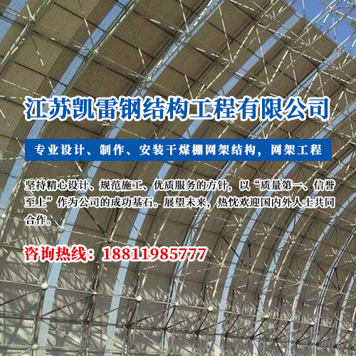 江蘇凱雷鋼結(jié)構(gòu)工程有限公司是專業(yè)設(shè)計(jì)、制作、安裝干煤棚網(wǎng)架結(jié)構(gòu),煤場(chǎng)封閉料倉(cāng)網(wǎng)架,及其配件的企業(yè)... 查看詳情